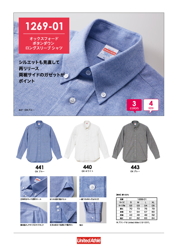 UA-1269 オックスフォード ボタンダウン ロングスリーブ シャツ