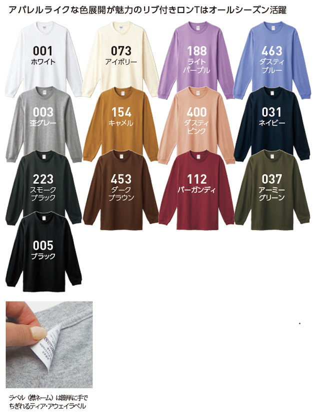プリントスター5.6オンス袖口リブ長袖Tシャツ 110-CLL