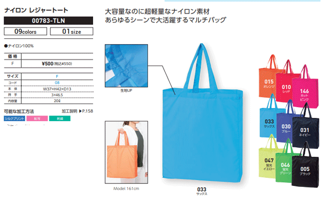大容量・超軽量のナイロン素材。 薄手で折りたたむとコンパクトになります。サブバックとしてご利用も