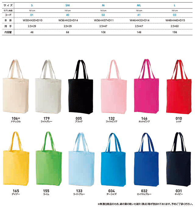 S・SM・M・ML・Lのバリエーションのシンプルなトートバッグは、様々なシーンに活躍します。