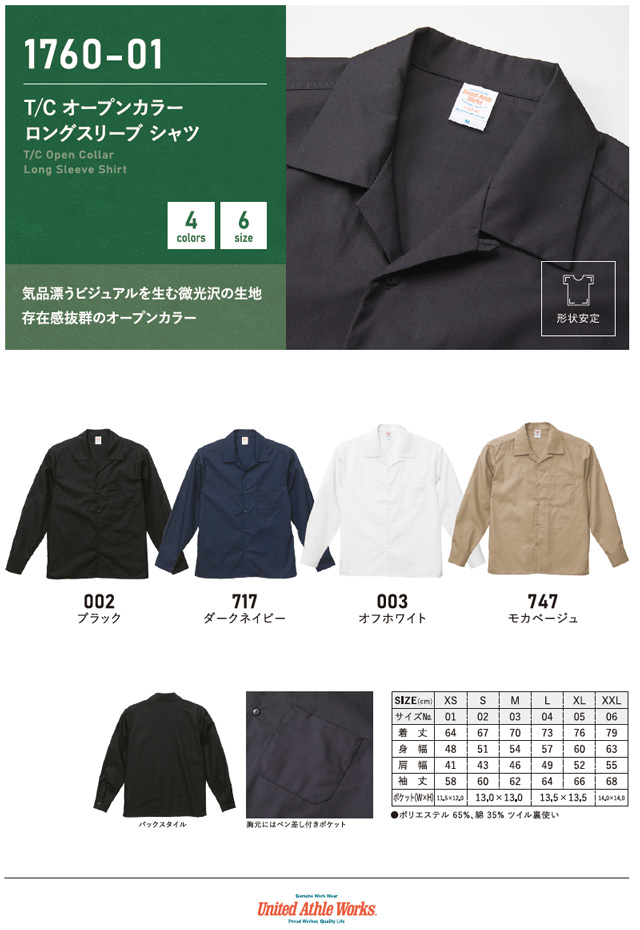UA-1760 T/C オープンカラー シャツ