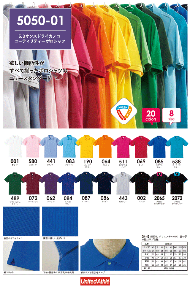 5.3ozドライCVC ポロシャツ UA-5050