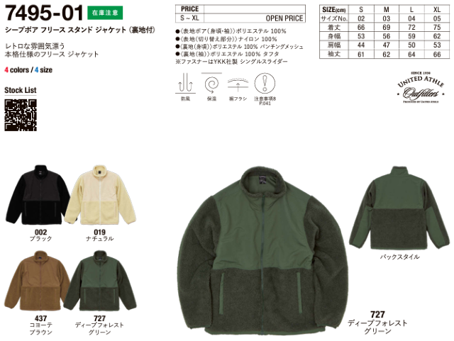 UA-7495 シープボア フリース スタンド ジャケット(裏地付)