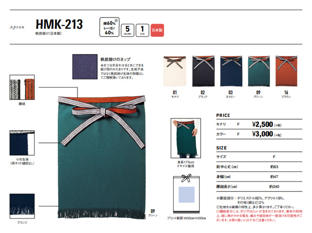 帆前掛け(日本製) HMK-213