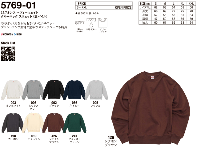 UA-5769 12.7オンス ヘヴィーウェイト クルーネック スウェット(裏パイル)