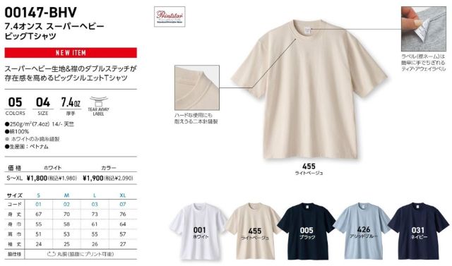 00147-BHV 7.4オンス スーパーヘビービッグTシャツ