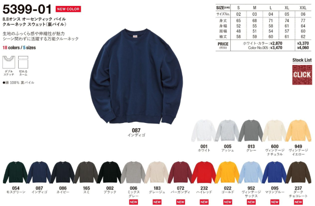 539901 8.8オンス オーセンティック パイル クルーネック スウェット(裏パイル)